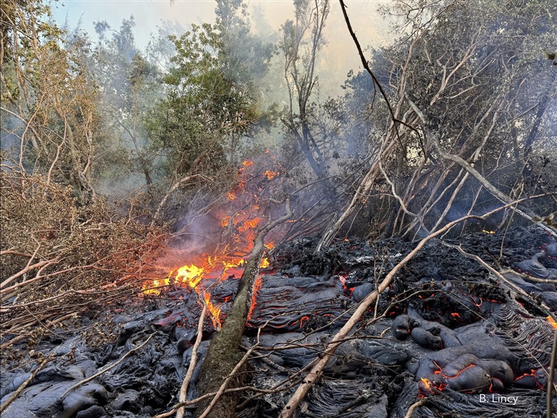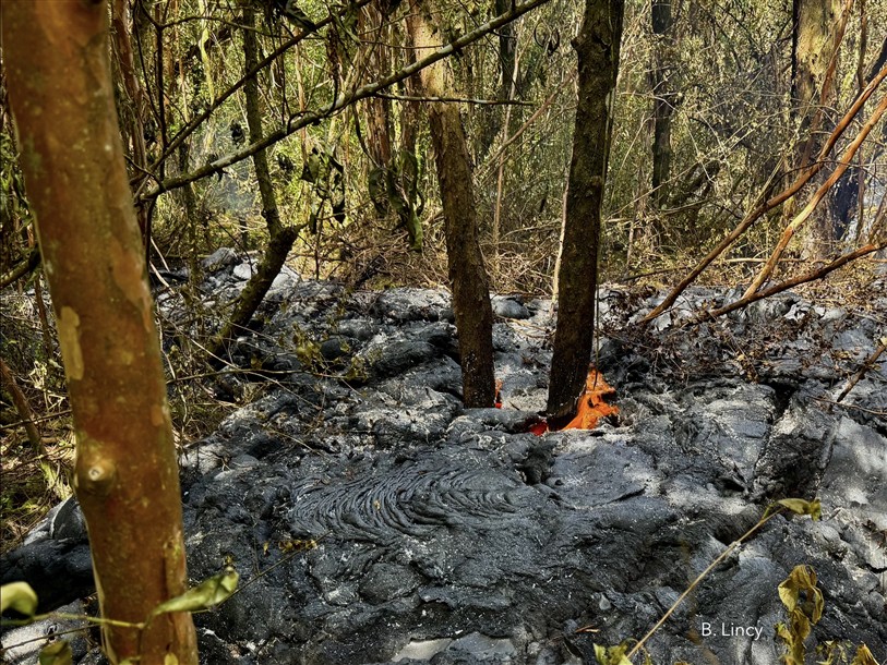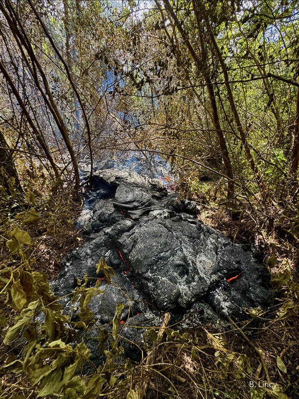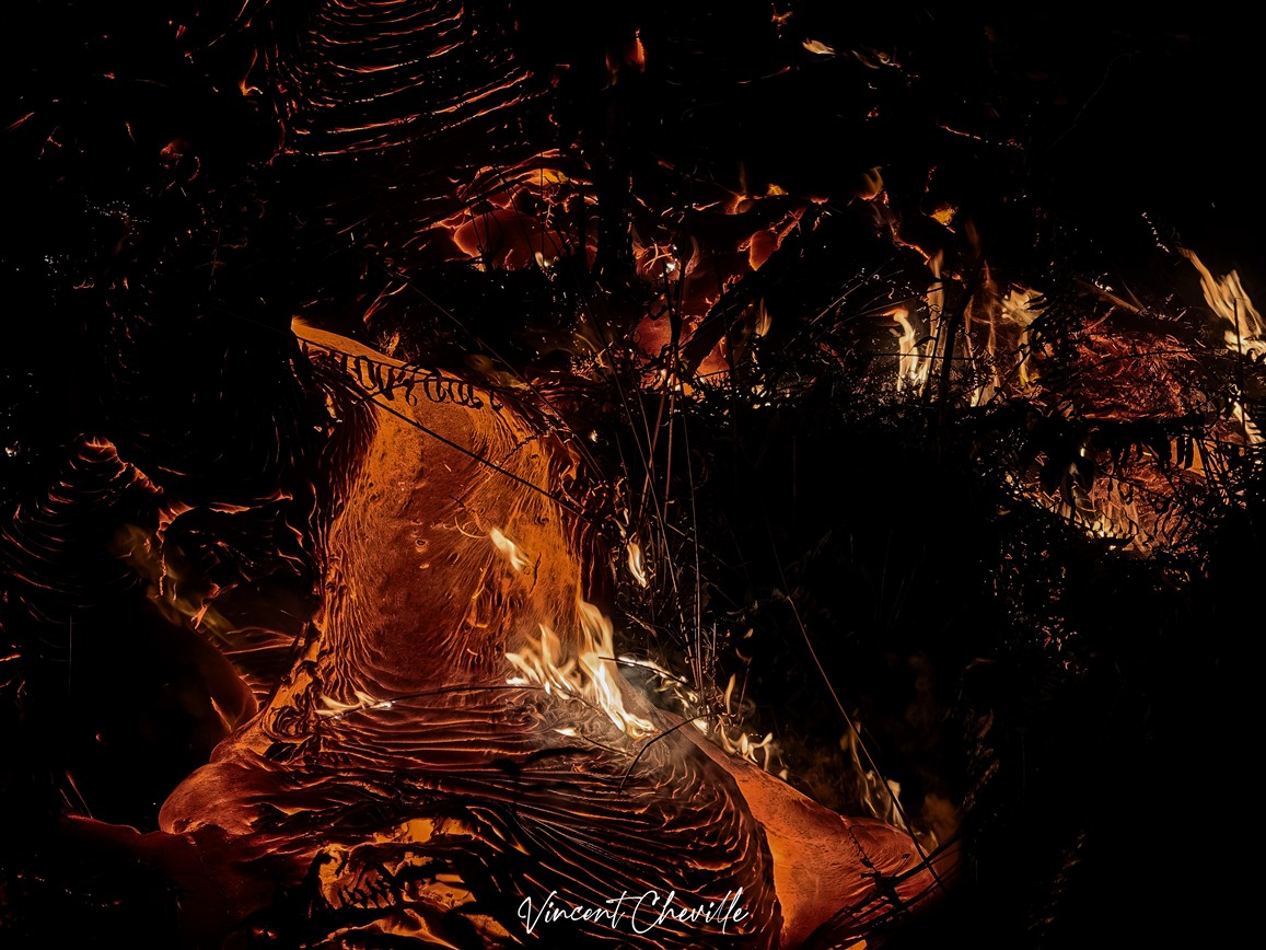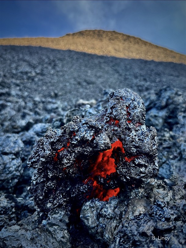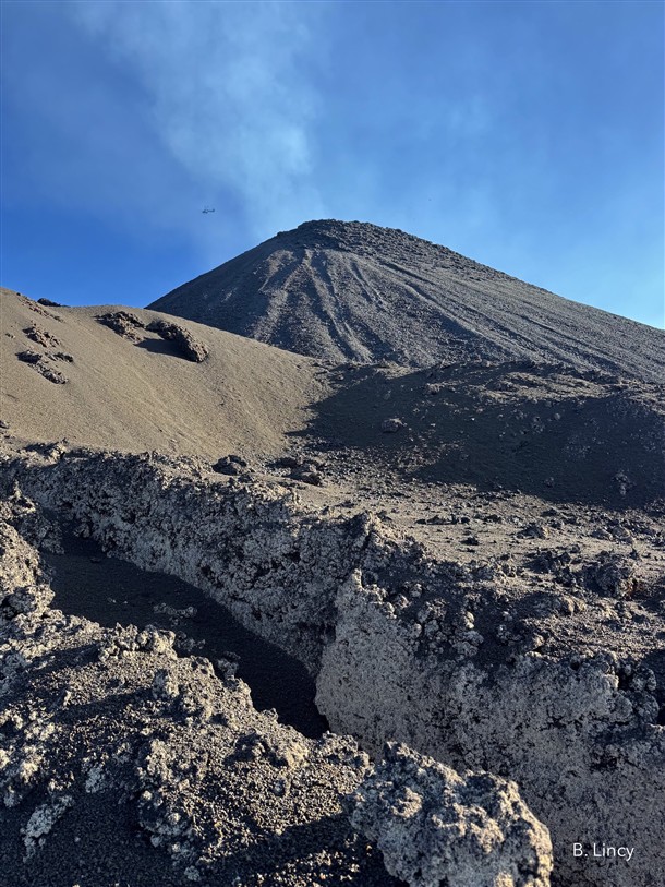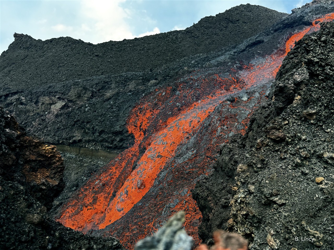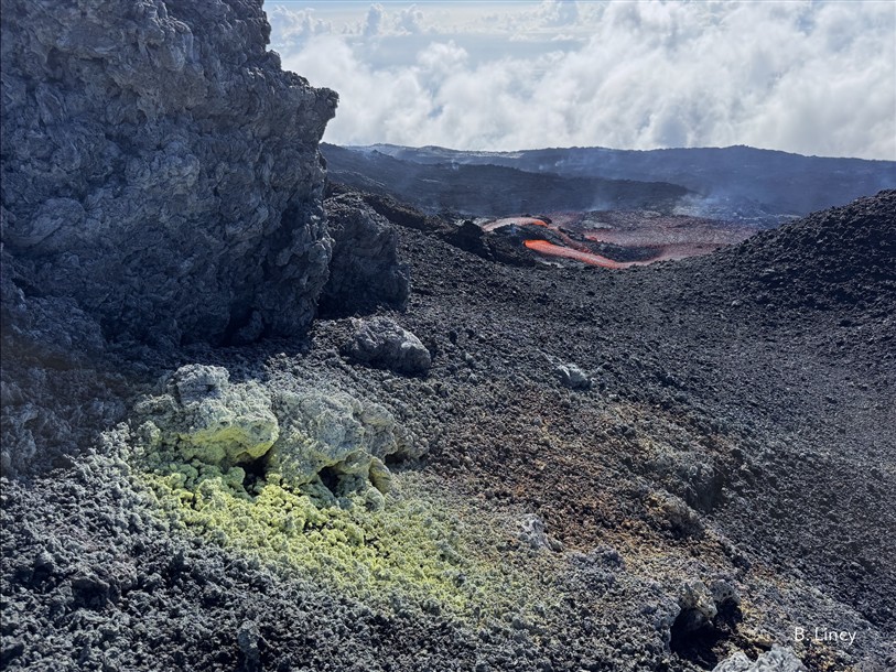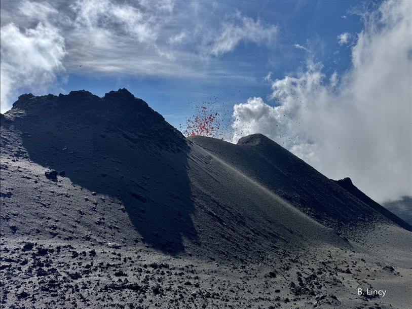 Cette reprise s’est faite au niveau du cône déjà en place, sans ouverture d’une nouvelle fissure distincte. Les observations montrent que la lave a réemprunté le réseau de tunnels installé au cours des semaines précédentes. C’est précisément ce qui explique la rapidité de la réactivation en aval : une partie du trajet était déjà en place, ce qui a permis à la lave de progresser beaucoup plus vite vers le bas du massif.