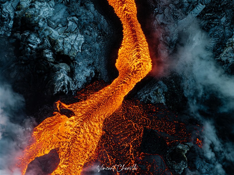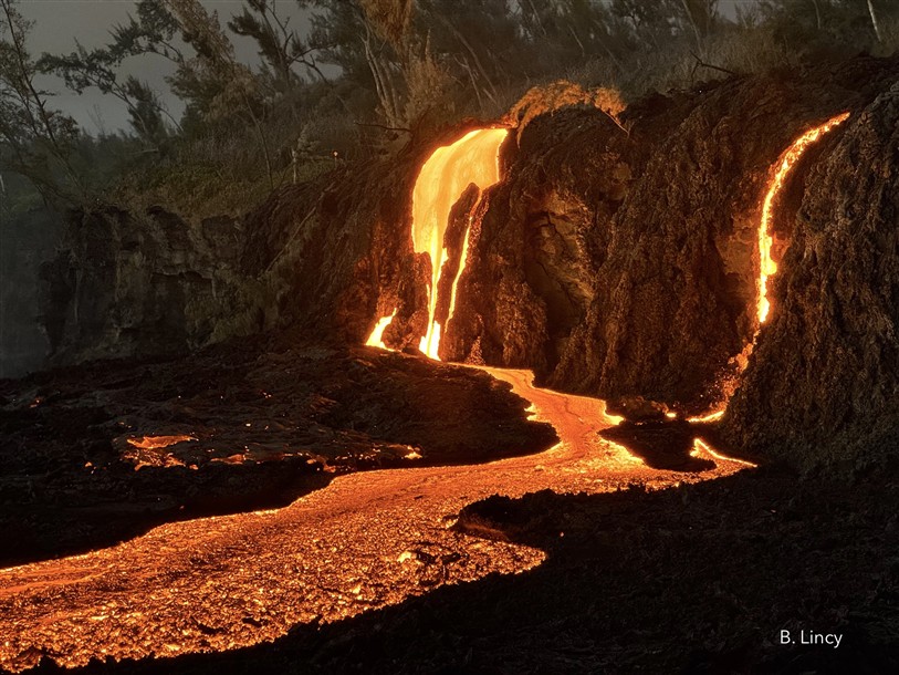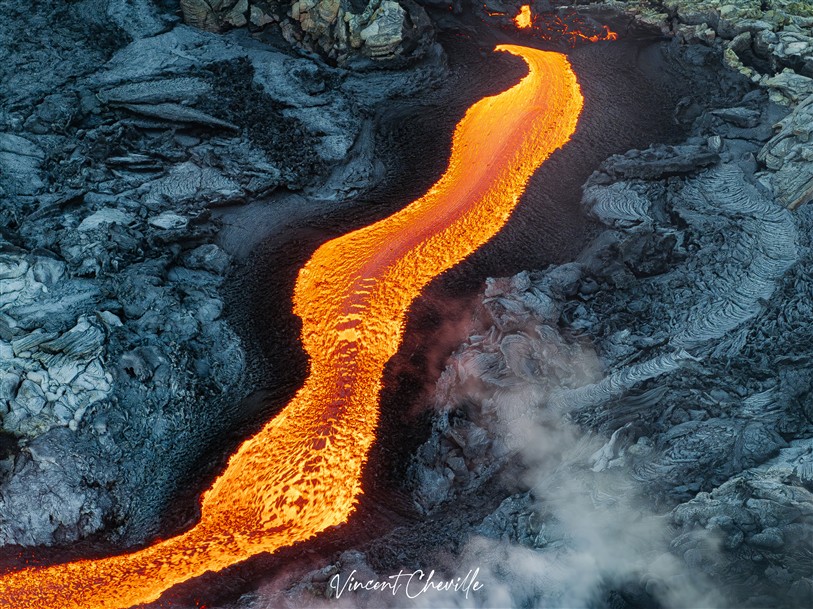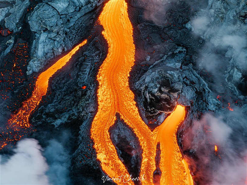 Au fil des jours, l’éruption change de nature. Le cône reste actif, mais le phénomène le plus important devient la mise en place de tunnels de lave. C’est ce réseau souterrain qui va permettre à la lave de conserver sa température et de parcourir de longues distances.