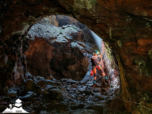 Ce tunnel de lave est de dimension assez variable, il sera nécessaire de marcher courbé voir progresser allongé sur certaines portions.